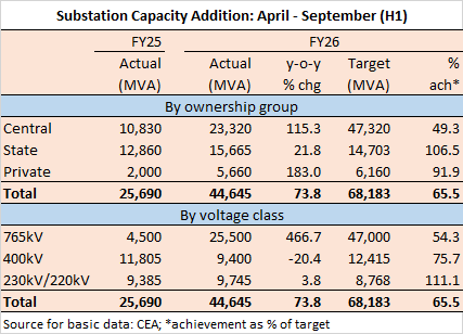 India’s substation capacity addition during the first half (H1: April to September) of FY26 was up 74 per cent, year-on-year, but still met only two-thirds of the planned addition.