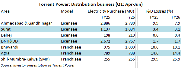 Torrent Power recorded lower T&D losses in its licensed and franchised power distribution business during the first quarter (Q1: April to June) of FY26.