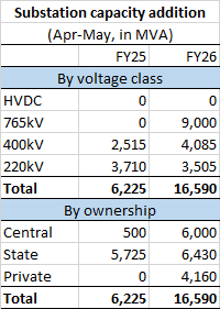 Ongoing fiscal year FY26 appears to have got off to a good start as far as substation capacity addition goes.